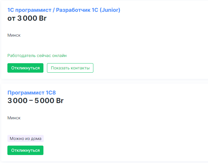 Зарплата специалистов уровня Junior начинается от 3000 BYN по статистике сервиса поиска работы Rabota.by